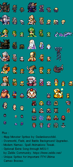 These patches were created by the broader community and have not been tested by the FFIV Ultima Plus Developer/Moderation team so potential bugs may present themselves.